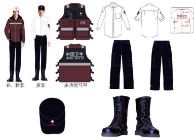 春、秋、冬裝——三季衛(wèi)生應(yīng)急服裝外觀沒有什么大的差別,上衣采用沖鋒夾克,顏色為專用“紅色(哈佛紅)”和“深藏藍(lán)”兩種顏色的組分式設(shè)計(jì);而冬裝是在春秋裝的基礎(chǔ)上配有可拆分的抓絨保暖內(nèi)膽。